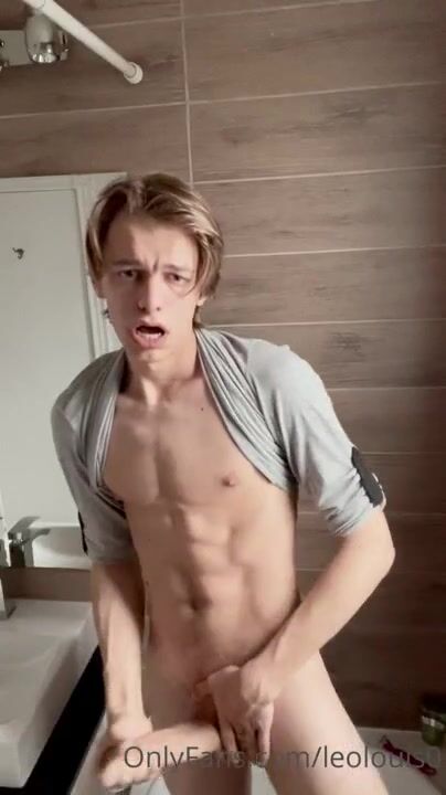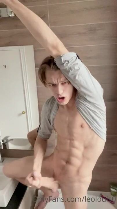Leo Louis jerks of fin the bathroom Gay porn videos